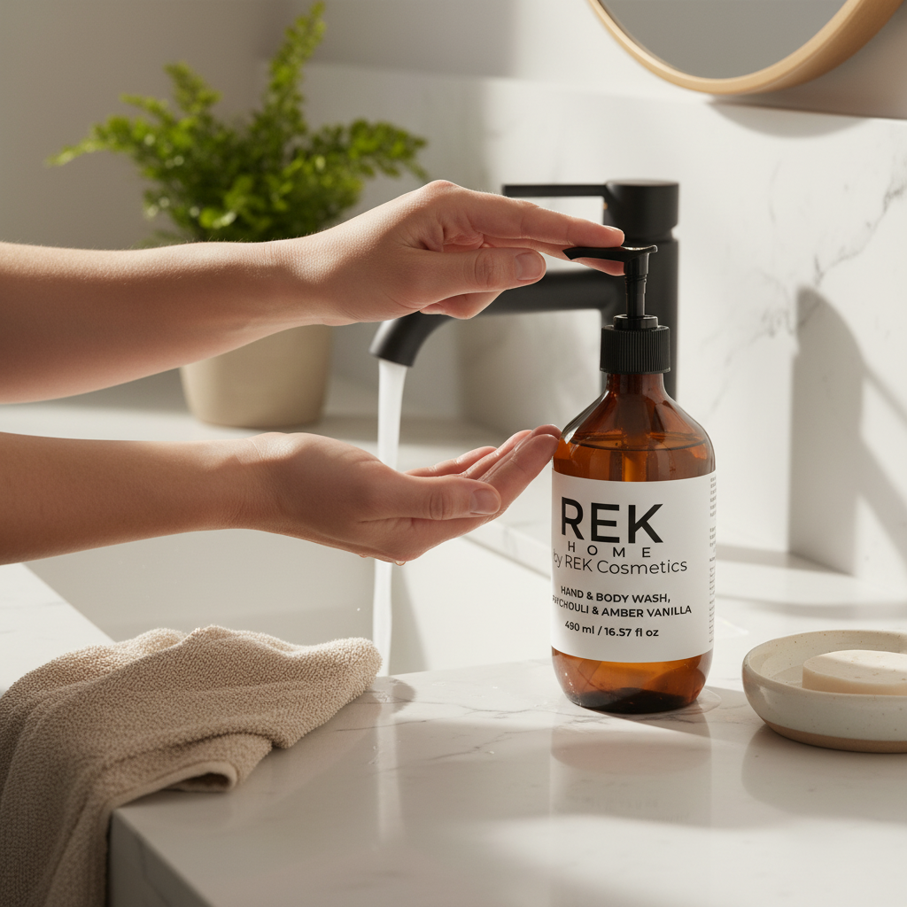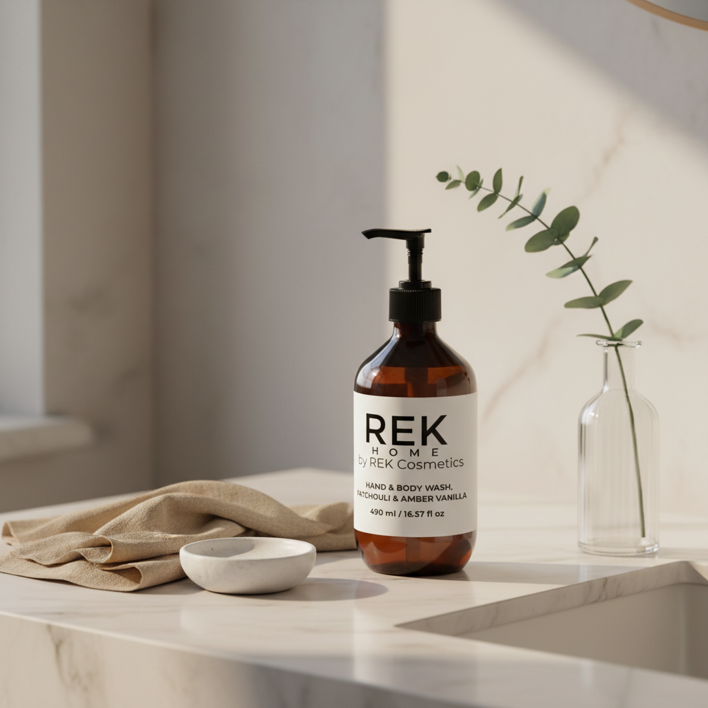 Elevate your everyday ritual with REK HOME Hand & Body Wash – Patchouli & Amber Vanilla. This gentle yet indulgent formula deeply cleanses while enveloping your skin in long-lasting moisture and a captivating scent blend of earthy patchouli and warm vanilla amber.